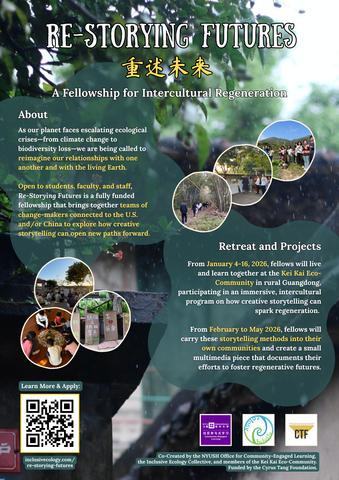 The Inclusive Ecology Collective, Based at NYU Shanghai, is a Think-and-Act Network that weaves together Interdisciplinary Research, Intergenerational Wisdom, and Inter-cosmological Perspectives to foster Regenerative Education and catalyze Systemic Transformations in response to the Planetary Ecological Crisis